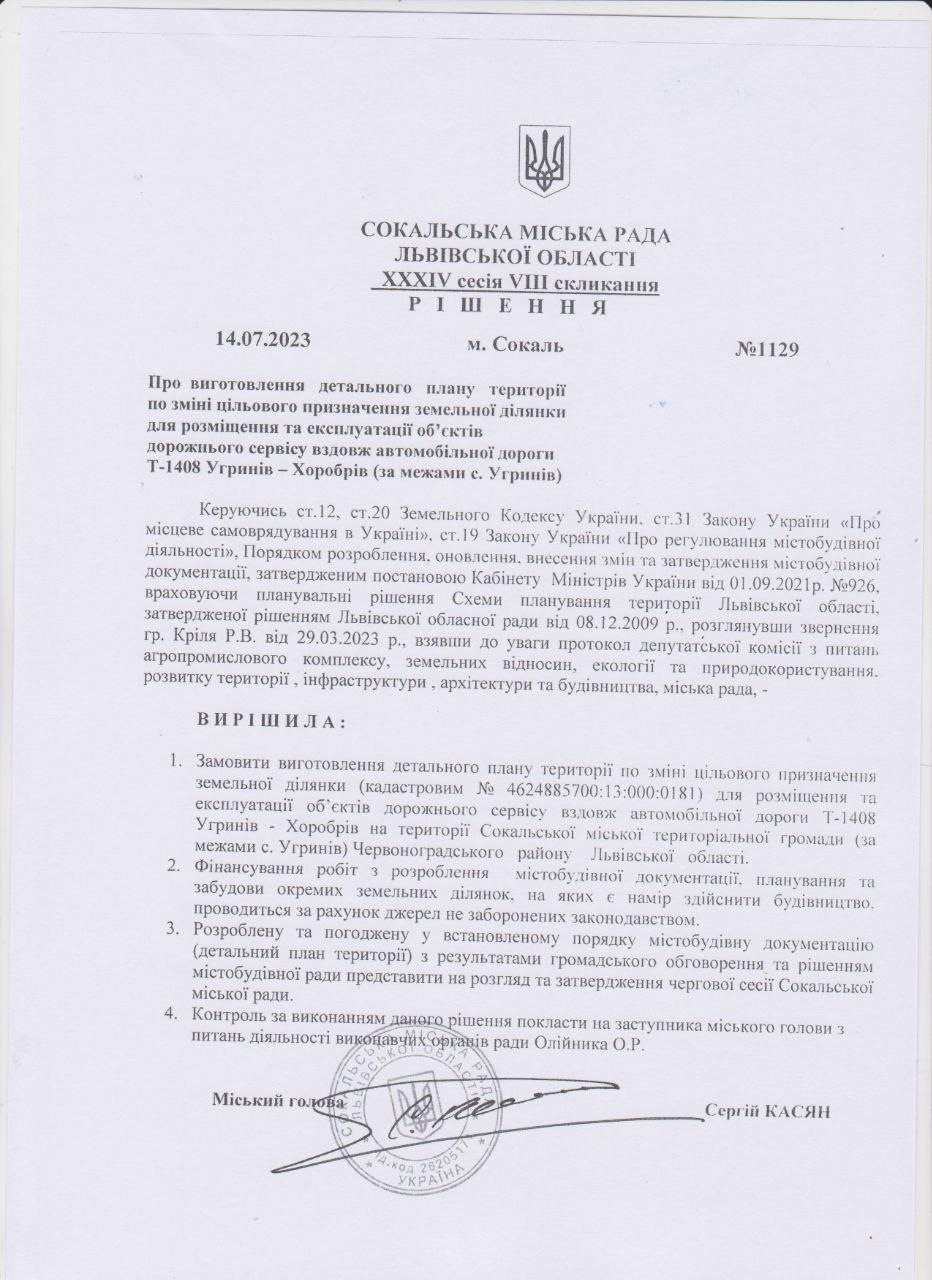 № 1129 від 14 липня 2023 року ««Детальний план території по зміні