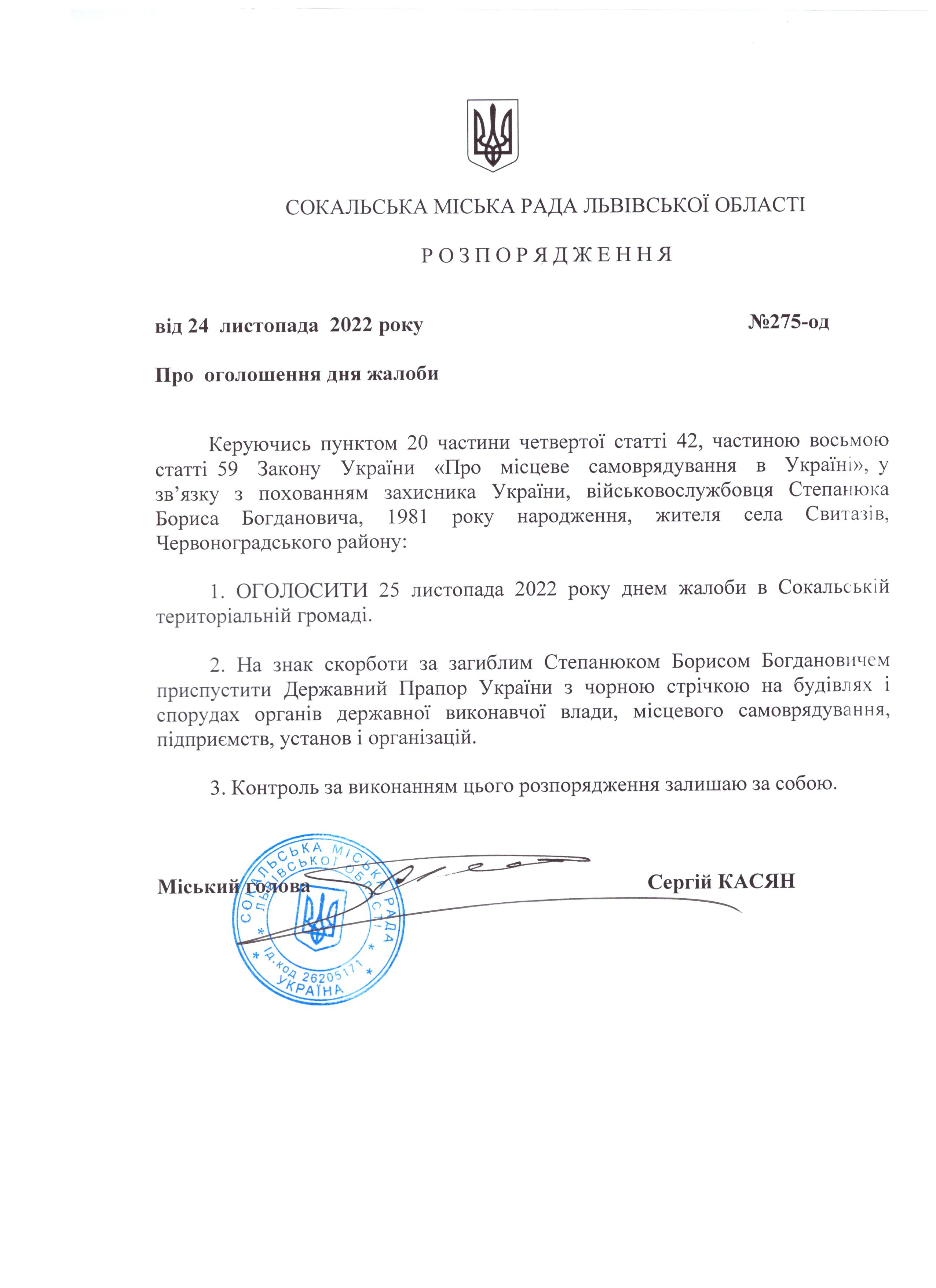 Розпорядження про день жалоби