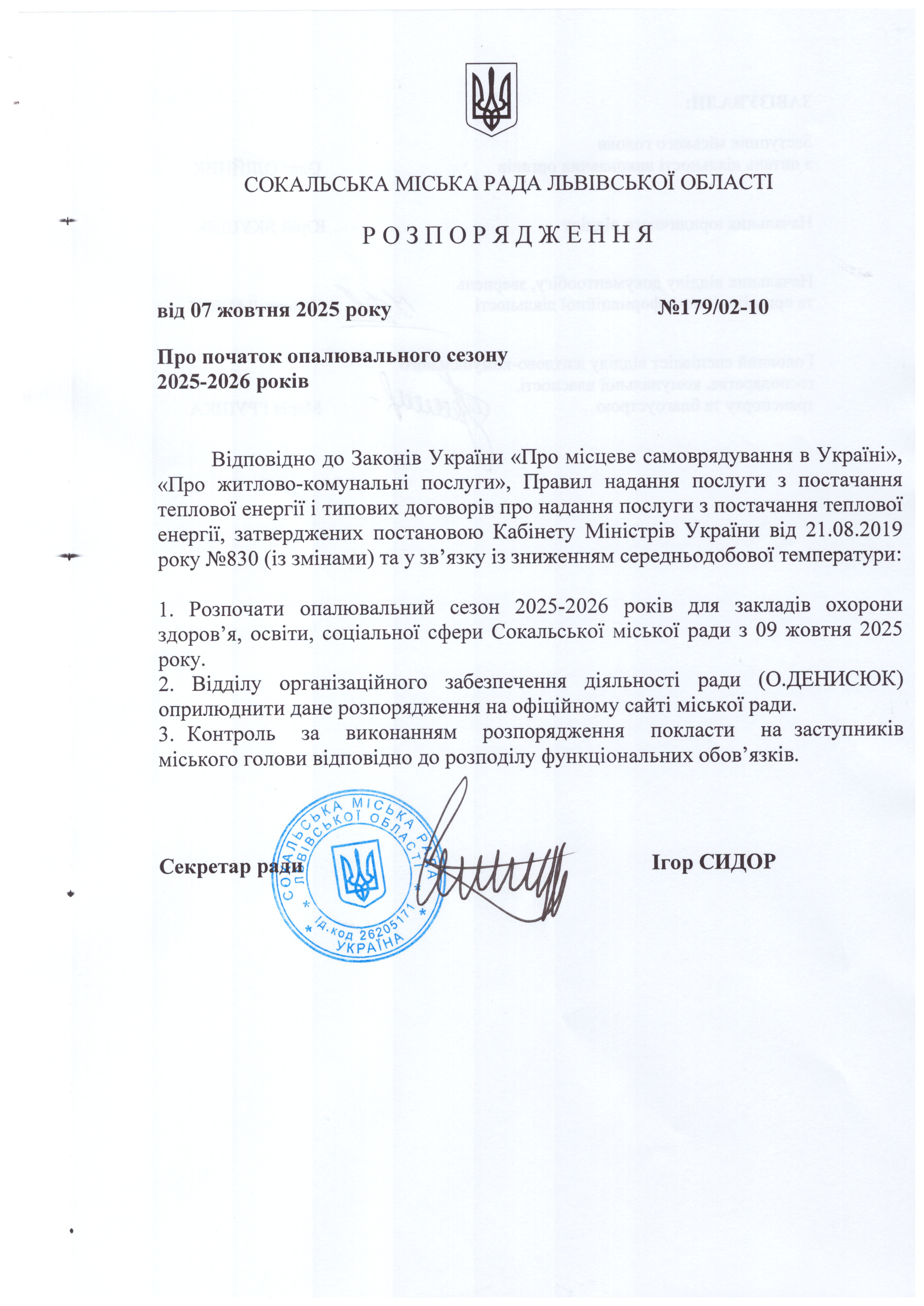 Розпорядження про завершення опалювального сезону 2025-2026 років